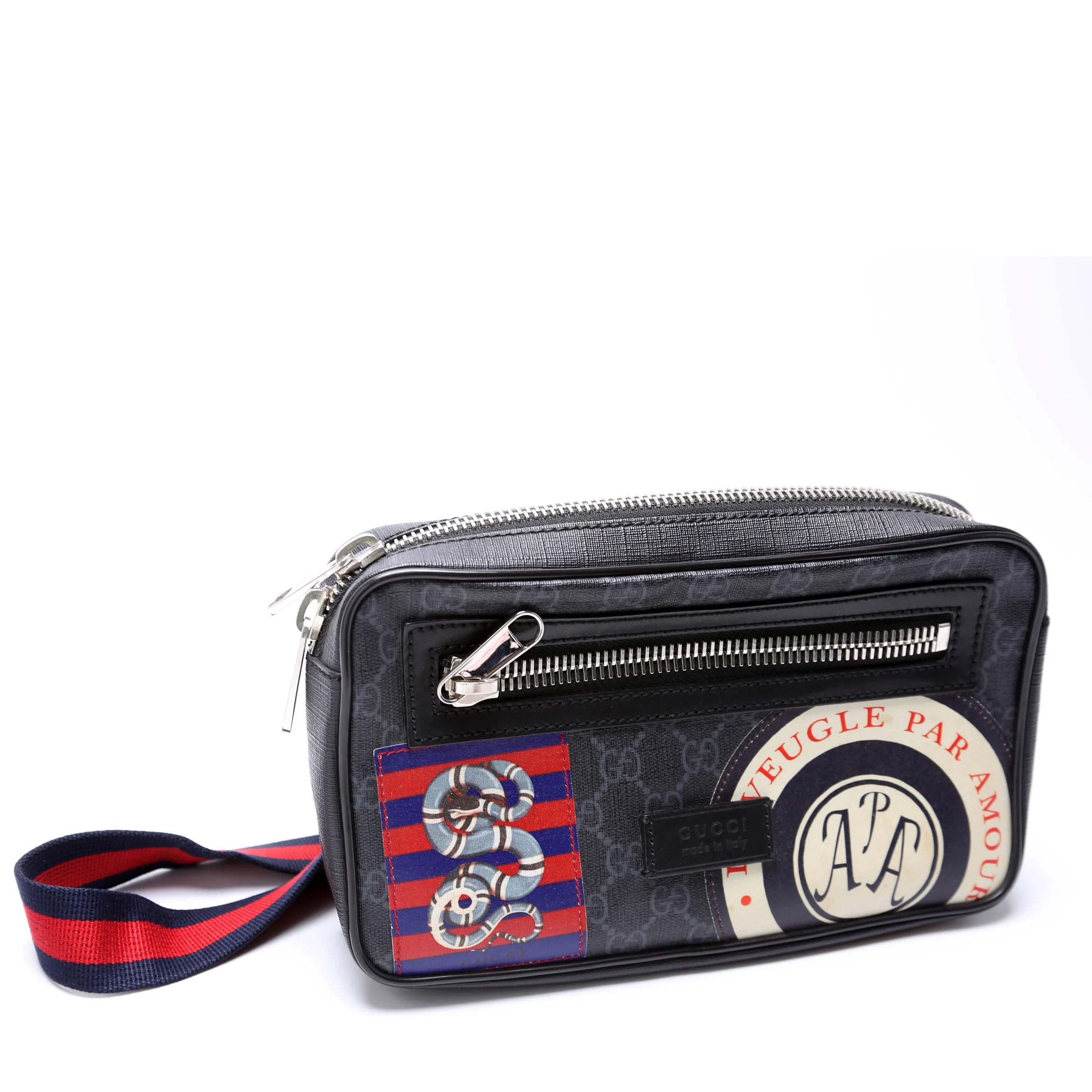 This pre-owned Gucci Soft GG Supreme Night Courrier Belt Bag is guaranteed 100% authentic. The exterior is in the classic Gucci GG Supreme coated canvas.