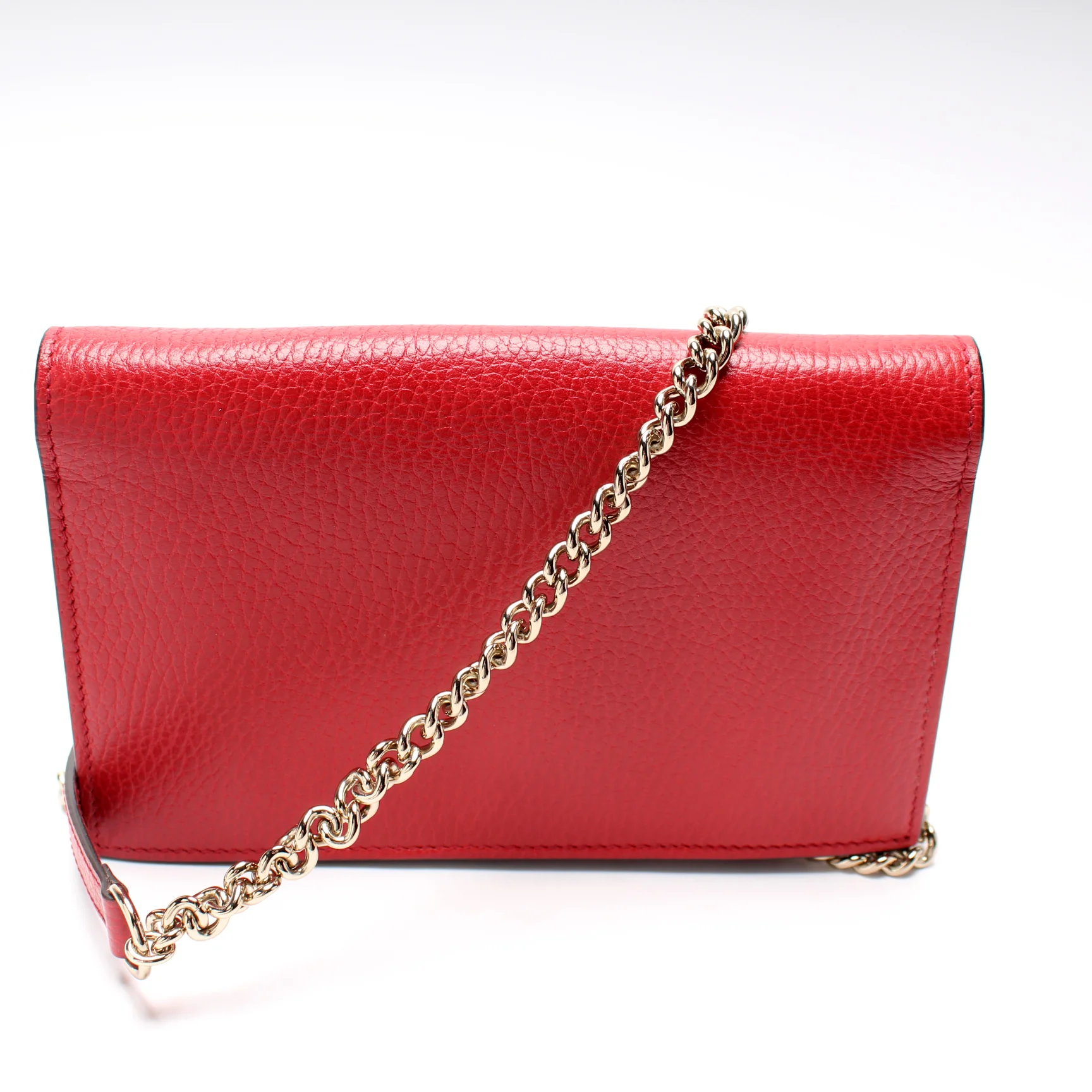 This pre-owned Gucci Dollar Calfskin Interlocking GG Chain Wallet is guaranteed to be 100% authentic.