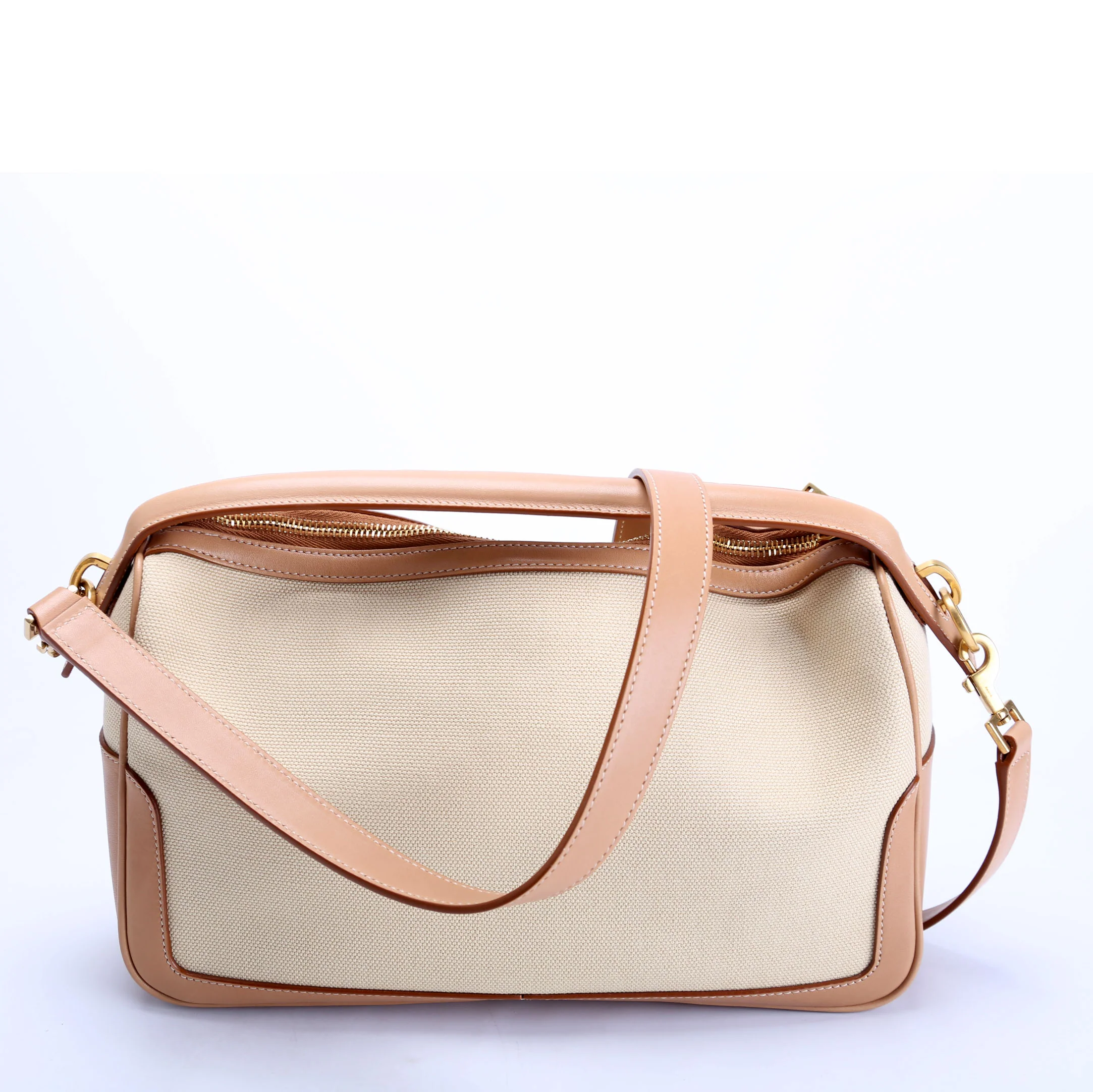 786156 Canvas/Leather Camera Top Handle Beige/Tan
