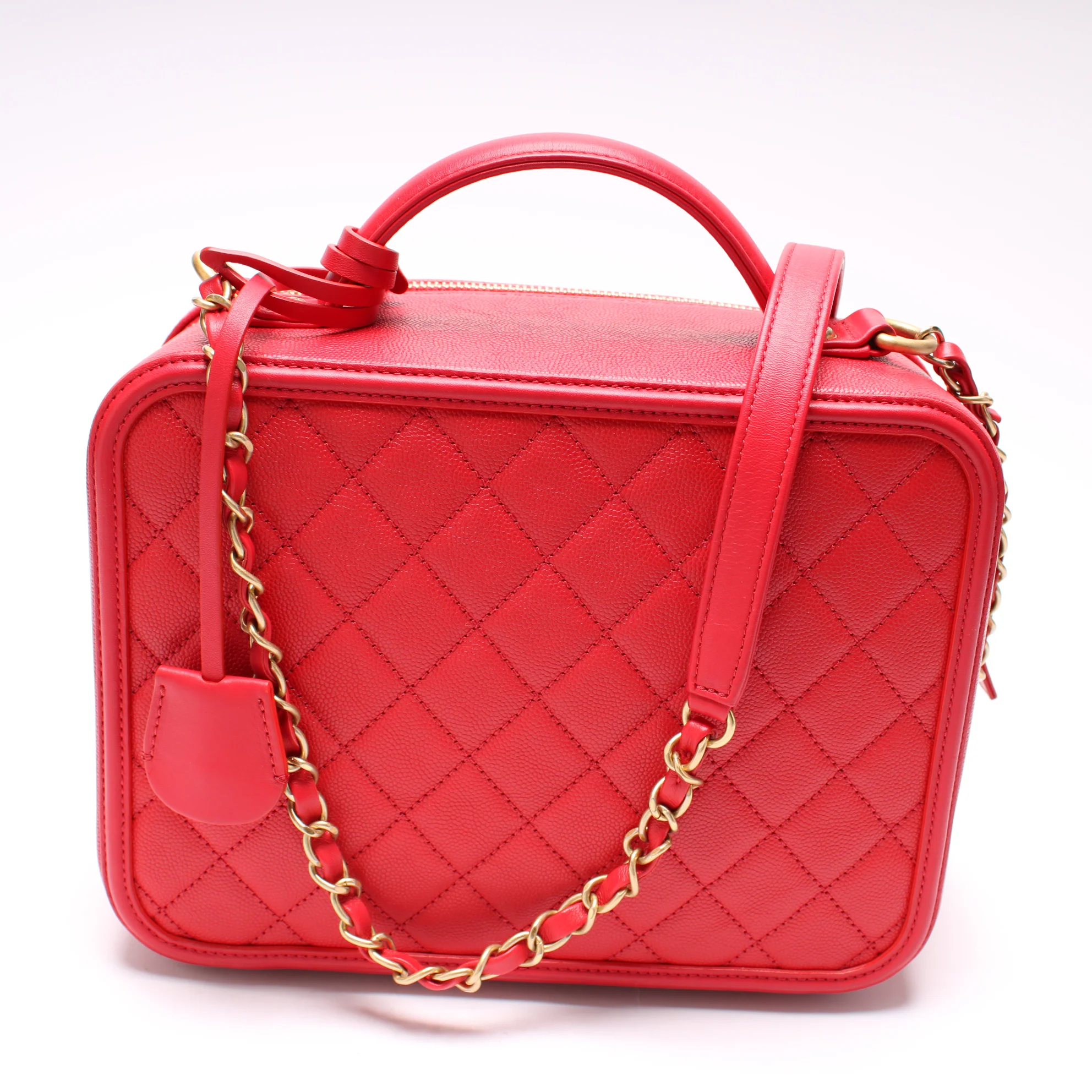 This pre-owned Chanel Filigree Vanity Case Large 25M is guaranteed 100% authentic.