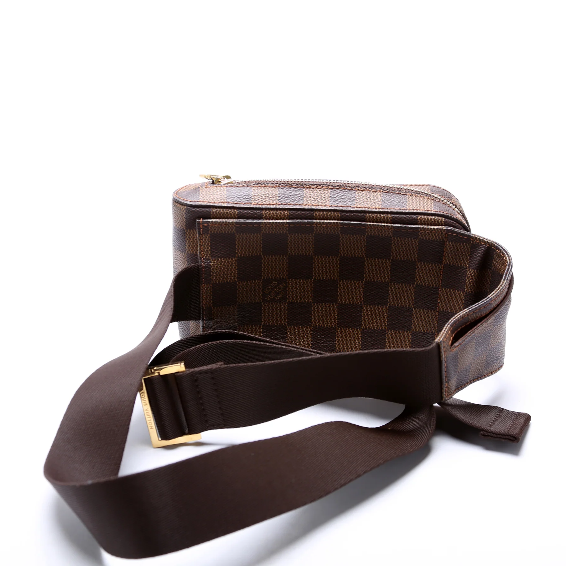 This pre-owned Louis Vuitton Geronimos is guaranteed 100% authentic. The exterior is in the classic Louis Vuitton Damier Ebene coated canvas.Ā