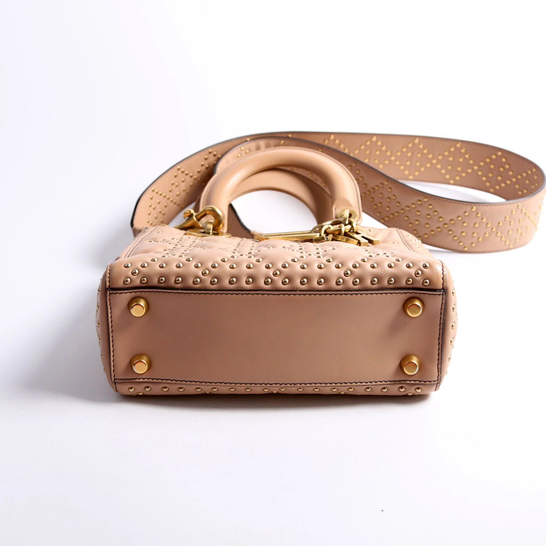 This pre-owned Dior Lady Dior Mini Studded is guaranteed 100% authentic. The exterior is in the classic Dior Lambskin Leather.