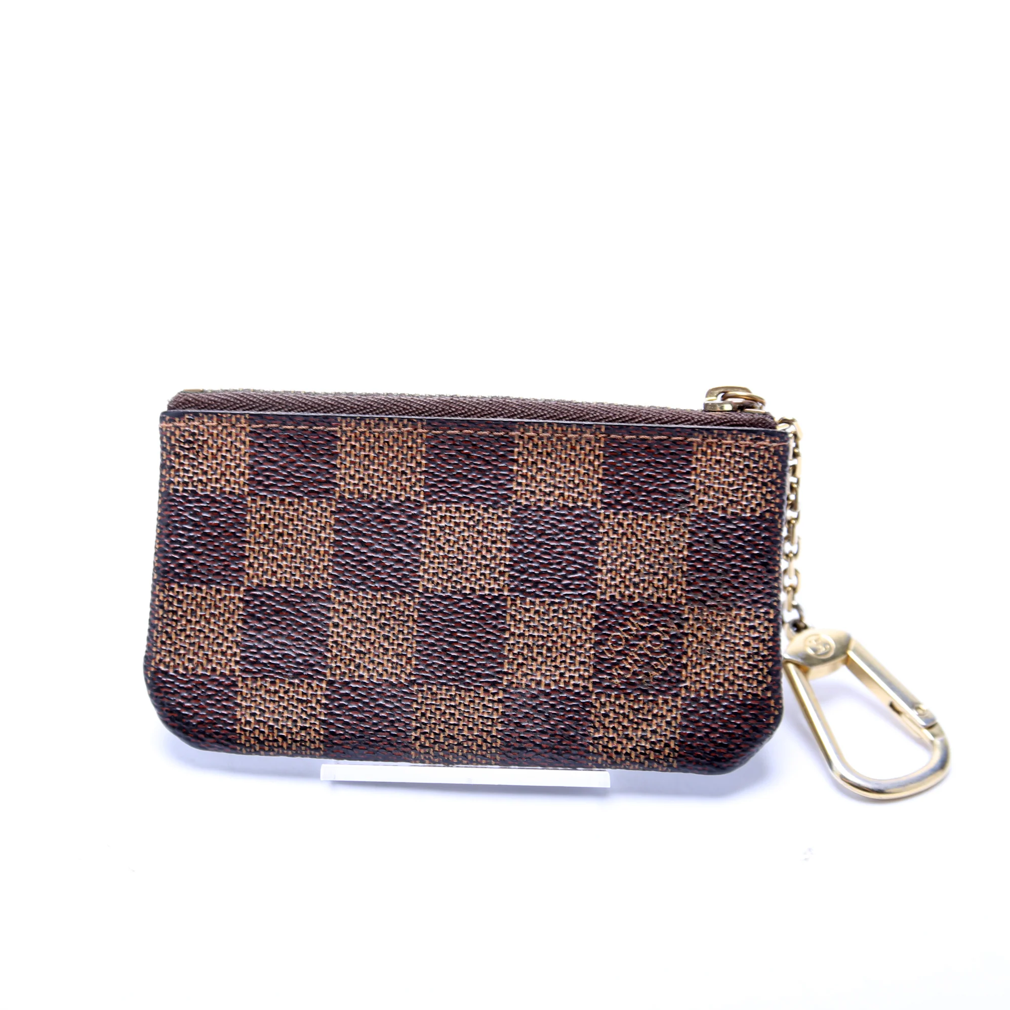 This pre-owned Louis Vuitton Pochette Cles is guaranteed 100% authentic. The exterior is in the classic Louis Vuitton Damier Ebene coated canvas.