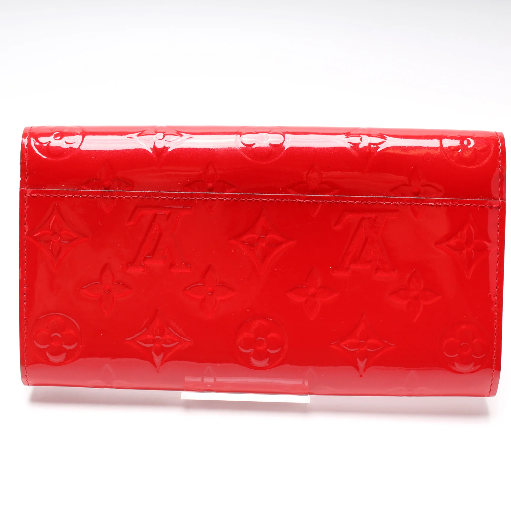 This pre-owned Louis Vuitton Sarah Wallet is guaranteed 100% authentic. The exterior is in the classic Louis Vuitton Vernis leather.