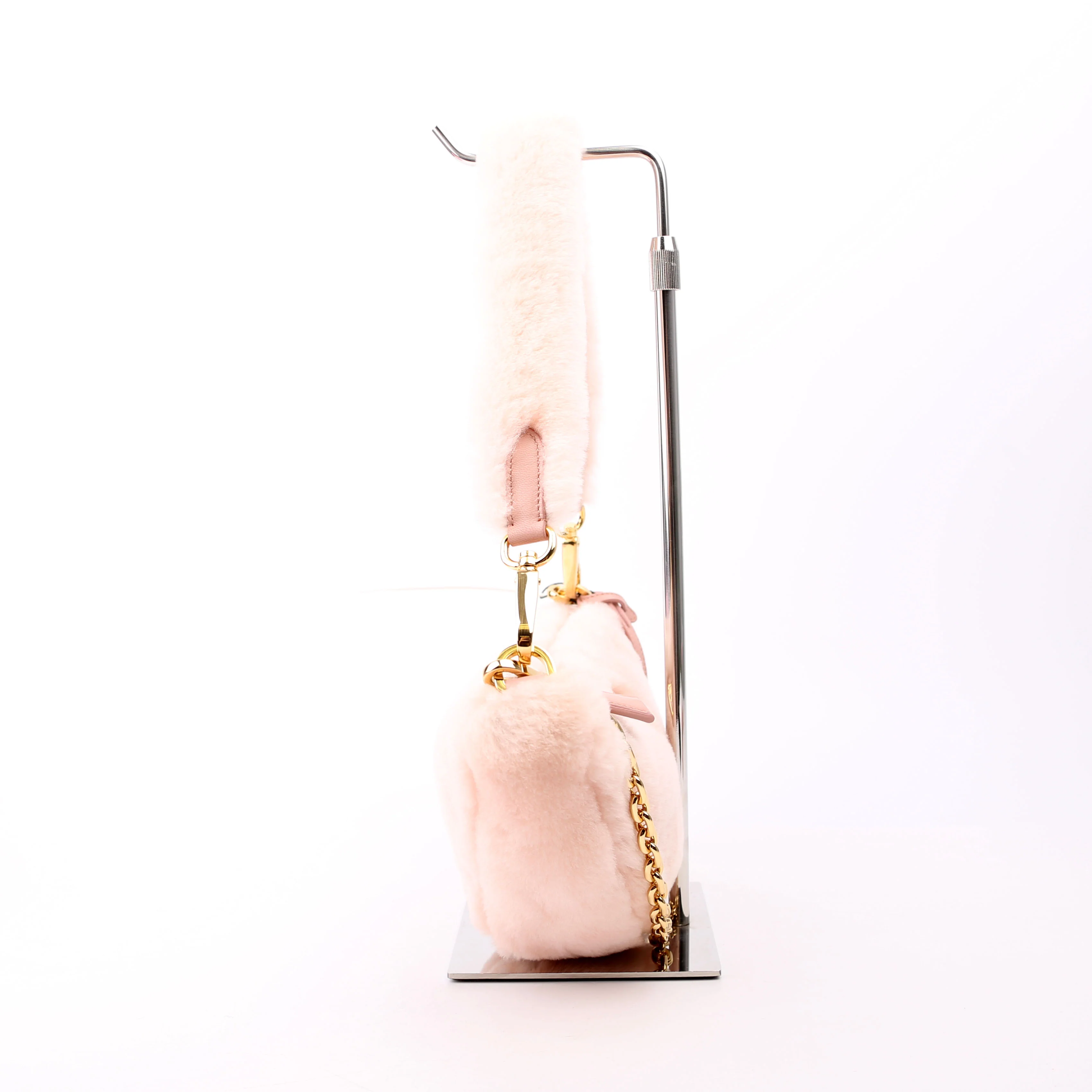This pre-owned Prada Triangle Shearling Mini Bag is guaranteed 100% authentic.